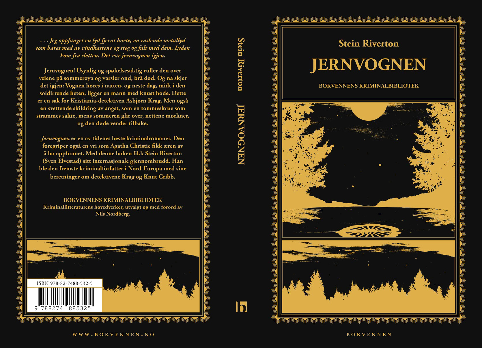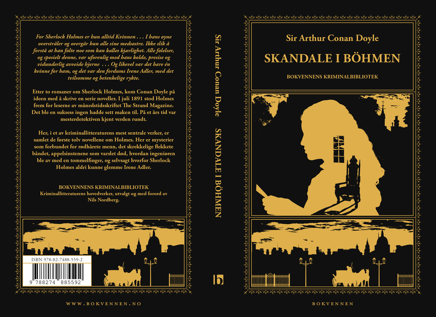 De første sju omslagene i en serie med de 100 beste klassiske kriminalromanene (og -novellene), publisert av Solum Bokvennen. Hver bok har et forord av Nils Nordberg. Trykket med gullfolie på svart papir.
