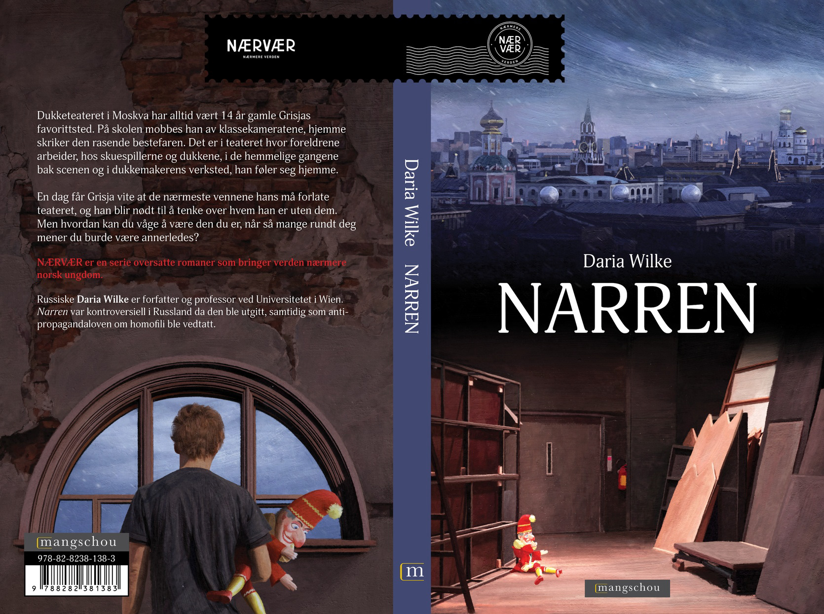 Bokomslag for Daria Wilkes ungdomsroman, Narren, utgitt av Mangschou, som en del av deres serie med ungdomsromaner fra hele verden.