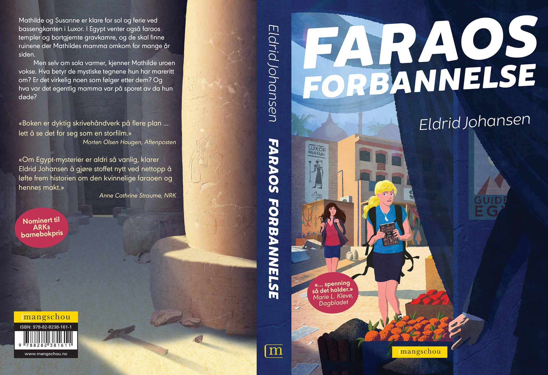 Bokomslag for Eldrid Johansens barnebok, Faraos forbannelse. Tegnet i Clip Studio Paint og Photoshop. Satt sammen i InDesign.